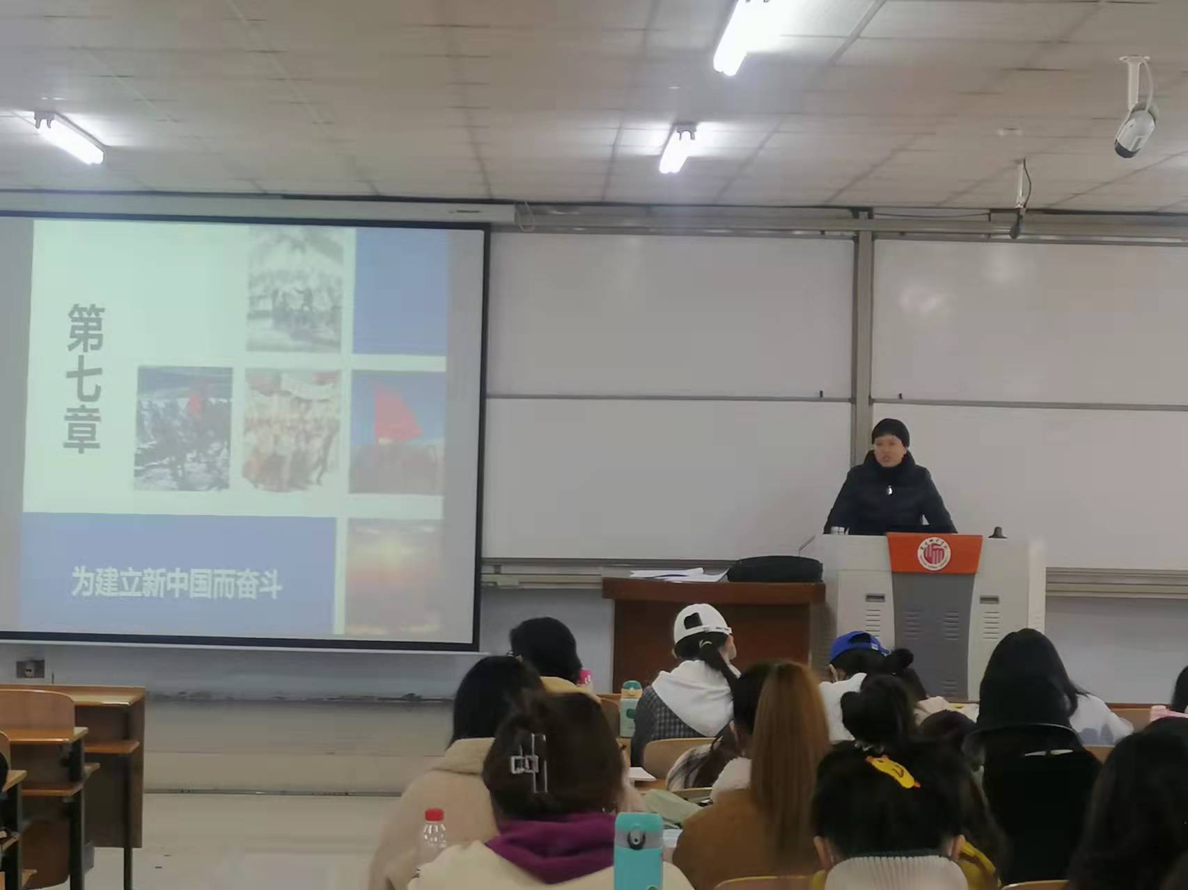 程芳芳老师讲述了“为建立新中国而奋斗”这一主题,程老师对课程内容比较娴熟、教学技巧运用自如、讲述内容充实,教学方法使用得当,能给学生思考、创新的启迪,有效调动学生情绪,使学生注意力较为集中。