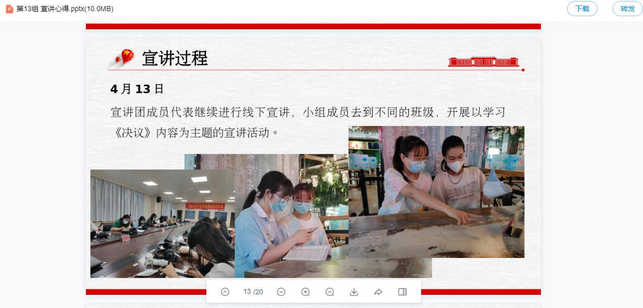 2021年11月,中国共产党十九届六中全会在北京召开,全会审议通过了《中共中央关于党的百年奋斗重大成就和历史经验的决议》(以下简称《决议》),为实现党的第二个百年奋斗目标指明了前进方向。为贯彻落实《新时代学校思想政治理论课改革创新实施方案》等文件精神,将党的创新理论融入思政课教学,人人操人人摸人人干马克思主义基本原理教研室结合本学期《马克思主义基本原理》课教学,在2019级本科生开展以“学《决议》 悟原理 人人争做宣讲员”为主题的实践教学活动。