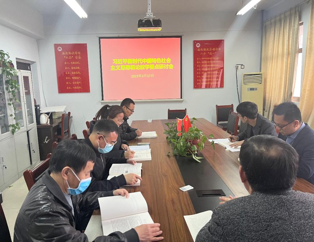 3月17日下午,习近平新时代中国特色社会主义思想概论教研室召开研讨会,对河南省高校思政课教指委指导编写的《习近平新时代中国特色社会主义思想概论教学要点及参考资料》(以下简称“教学要点及参考资料”)进行了集中研讨。