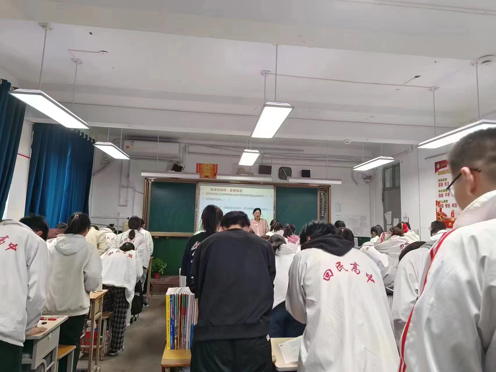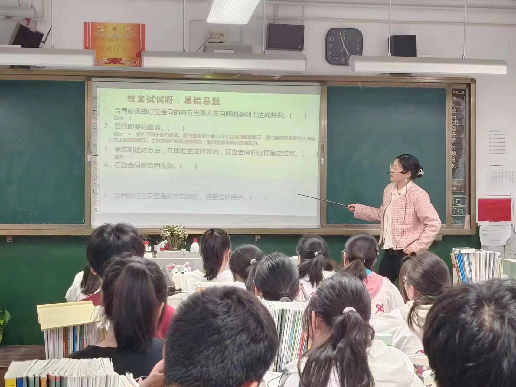 而后,付老师带领第三坊坊员进行了跟岗听课实践教育活动。付老师讲授的是民事权利与义务中的第四课《侵权责任与权利界限》。付老师的教学过程设计完整得当,讲授重难点突出,语言规范、生动、有条理,调动了学生的积极性,使坊员获益匪浅。