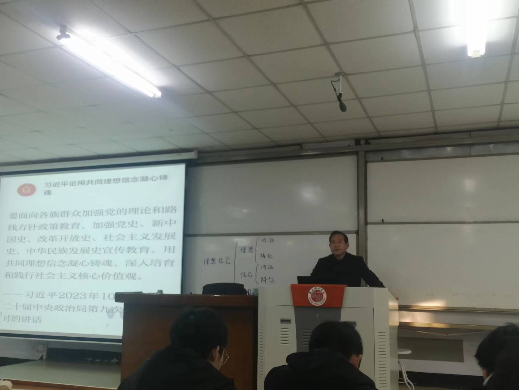 围绕《理想信念的内涵及重要性》这一章节内容,朱坤老师认真开展课堂教学,从复习巩固人生态度等内容导入新课学习,精心设计调查问卷启迪学生对理想信念内涵的深入思考,遴选代表性案例坚定学生树立崇高理想信念的决心信心,进而领悟习近平总书记所强调的“空谈误国,实干兴邦”的深刻意蕴。朱坤老师在授课中以学习通等现代媒体技术为平台,以学生为教学主体,以小组讨论交流等为教学形式,把课前课中课后有机衔接,学生课堂主动参与意识强烈,教学效果良好,是一堂较成功的范式改革公开课。(邱向玲撰稿;朱坤一审;丁亚仙二审;龚志宏三审)