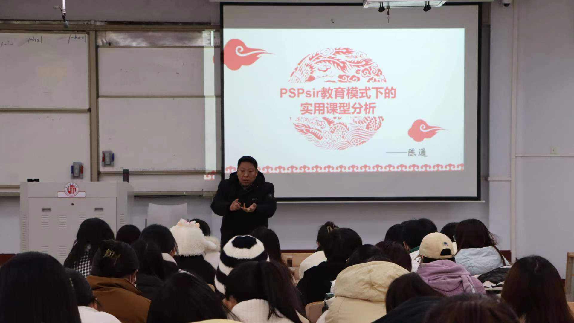 思想政治教育系薛明珠主任首先对参会的坊主老师表示热烈的欢迎和诚挚的感谢。然后向全体坊员强调了教育教学技能培养的必要性和重要性,希望同学们珍惜这宝贵的学习机会,积极参与工作坊的各项培训活动,保质保量地完整工作坊的各项工作任务,不断提升自身的专业素养和教学技能。工作坊坊主陈通老师为这次培训活动作了《PSPsir教育模式下的实用课型分析》专题讲座。陈老师围绕“培训课程的PSPsir模型”深入探讨了课程思政与思政课程的区分以及当前思政课在教育实践中的现状、难题和实践路径,强调未来教师创新教育理念和提升个人素养的重要性。陈通老师结合自身的教学经历和案例,准确而有趣地介绍了思政课课堂教学的分类和思政教师教学的心法与手法,要求同学们在思想理念与原则、教学技术与操作上实现统一,鼓励同学们积极参与工作坊的各项培训活动并自觉模拟训练。