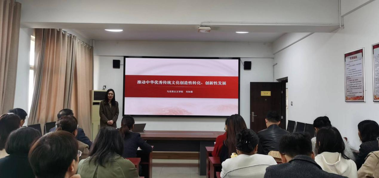 活动中,刘如意老师做题为《推动中华优秀传统文化创造性转化、创新性发展》的微课教学。之后,与会老师围绕教学选题、教学设计、教学实施、教学内容、教姿教态等各个方面对刘老师加以点评。