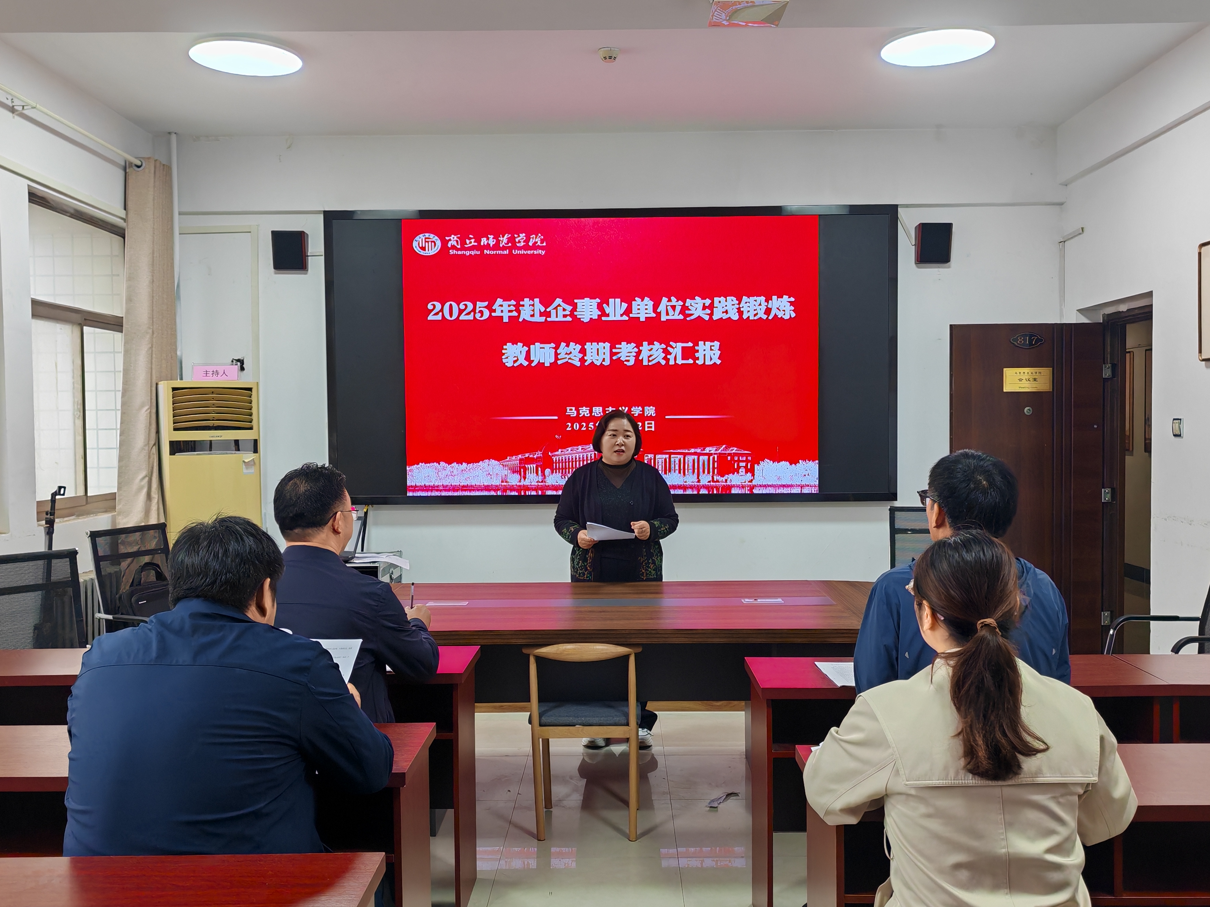 思想政治教育系教师谷慧玲就赴企事业实践锻炼情况作了全面汇报,详细介绍了在实践单位的锻炼过程.考核小组认真查阅了锻炼材料,并围绕汇报内容进行了提问与评议。考核小组对谷慧玲取得的实践成果给予充分肯定。