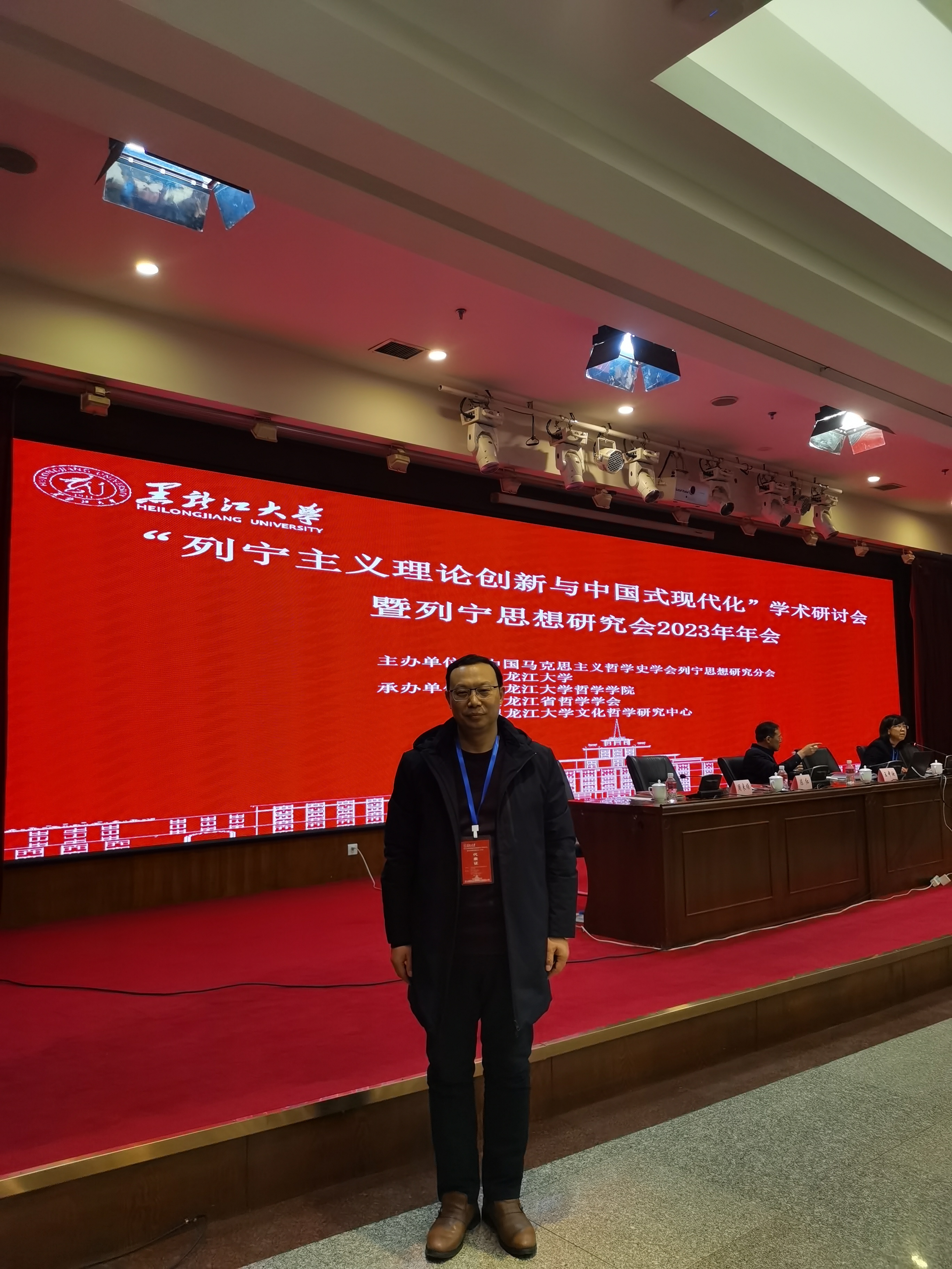 为深入学习贯彻党的二十大精神,纪念列宁逝世100周年,12月15日至17日,由中国马克思主义哲学史学会列宁思想研究分会、黑龙江大学主办,黑龙江省哲学学会、黑龙江大学哲学学院、黑龙江大学文化哲学研究中心承办的“列宁主义理论创新与中国式现代化”学术研讨会暨列宁思想研究会2023年年会在黑龙江省哈尔滨市召开。来自北京大学、清华大学、中共中央党校(国家行政学院)、中国人民大学、中国社会科学院、中山大学、辽宁大学、海南师范大学、黑龙江大学、哈尔滨工程大学、福建师范大学等50余所高校、党校、科研院所,以及《中国社会科学》《哲学研究》《理论探讨》《理论探索》《学术交流》等相关期刊近200名专家学者和师生参加会议。我院青年教师孙国栋博士应邀参加会议。