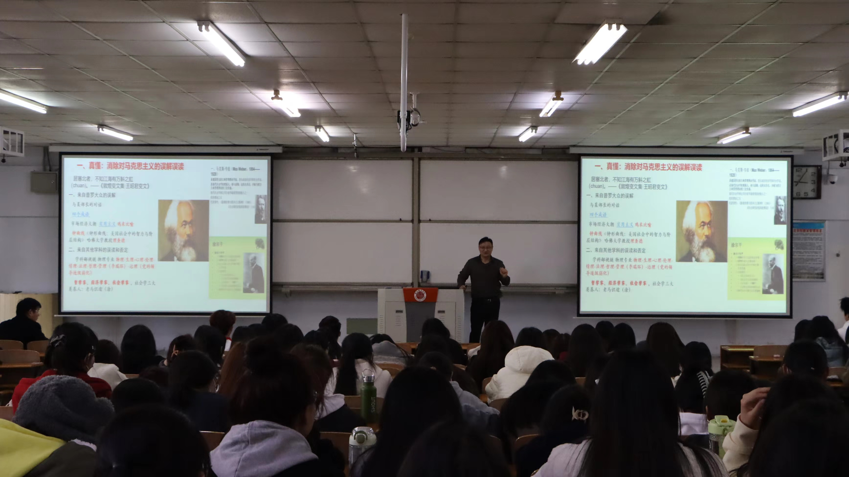 贾彦峰院长用风趣幽默的语言,从“真懂:消除对马克思主义的误解误读”;“真学:走进马克思主义”;“真信:认同马克思主义”;“真用:践行马克思主义”等四个方面,给同学们带来了一场丰富的学术盛宴,让学生受益匪浅。贾彦峰的讲座深入浅出,既有理论的高度,又有实践的深度,对同学们今后的学习以及将来从事学术研究具有一定的指导意义。