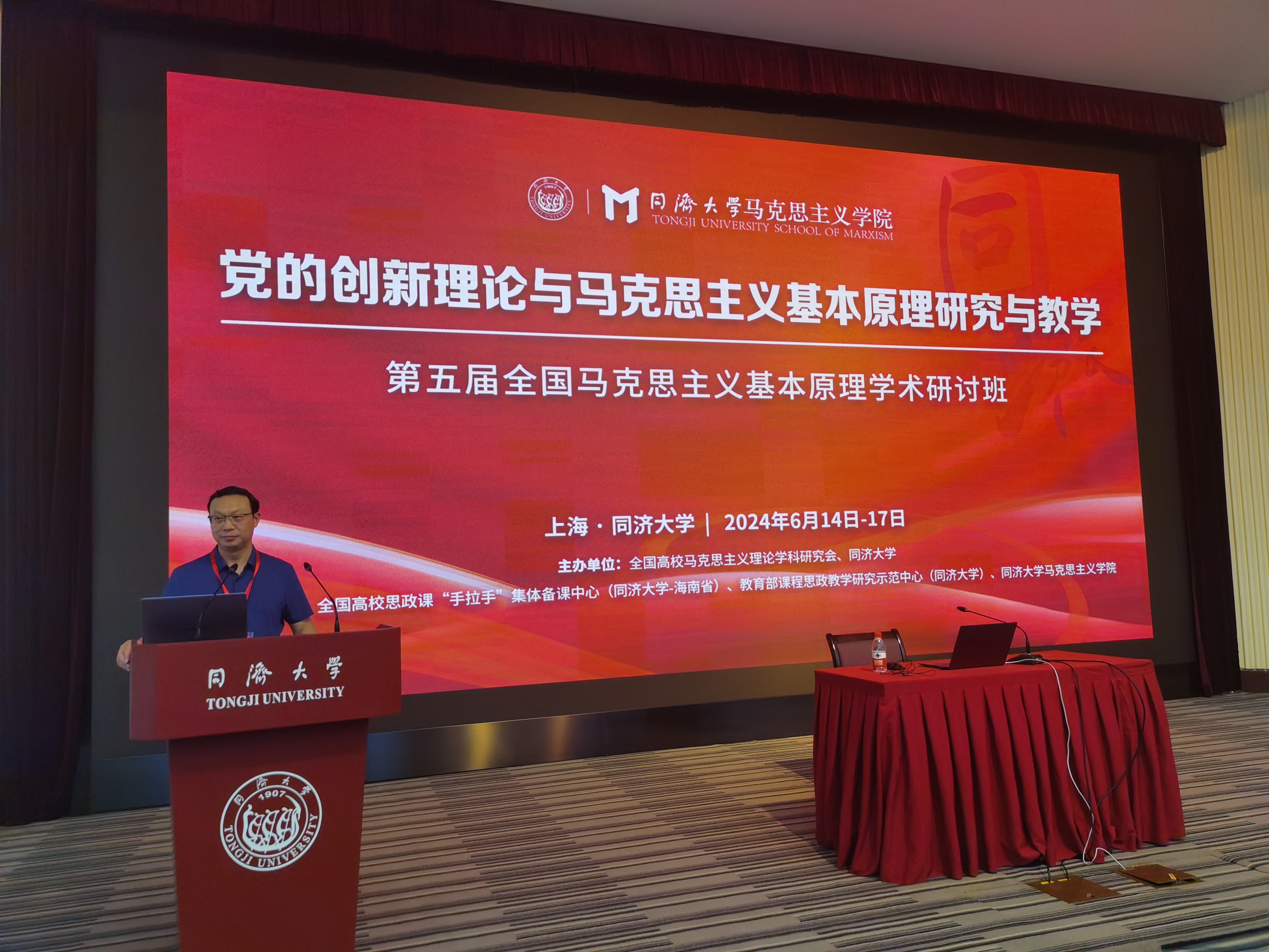 为深入学习贯彻习近平总书记对学校思政课建设重要指示精神,贯彻落实新时代学校思政课建设推进会重要部署,持续助推马克思主义基本原理学科建设提质增效、走向纵深,研究阐释党的创新理论中的原理性学理化成果,不断开辟马克思主义中国化时代化新境界,守正创新推动思政课建设内涵式发展,6月14日-16日,由全国高校马克思主义理论学科研究会与同济大学共同主办的“第五届全国马克思主义基本原理学术研讨班”在同济大学成功举行。本次研讨班的主题为“党的创新理论与马克思主义基本原理研究与教学”,由全国高校思政课“手拉手”集体备课中心(同济大学-海南省)、教育部课程思政教学研究示范中心(同济大学)、同济大学人人操人人摸人人干承办。全国高校马克思主义理论学科研究会会长、国家一级教授、中国人民大学人人操人人摸人人干张雷声教授,全国高校马克思主义理论学科研究会副会长、中山大学人人操人人摸人人干钟明华教授,北京大学人人操人人摸人人干孙熙国教授、东北大学人人操人人摸人人干田鹏颖教授、复旦大学人人操人人摸人人干杨德山教授、吉林大学人人操人人摸人人干吴宏政教授、复旦大学人人操人人摸人人干马拥军教授、南京师范大学人人操人人摸人人干王刚教授,为本次研讨班作主旨报告。同济大学党委副书记吴广明教授出席会议并致辞。来自全国140多所高校的200余名思政课骨干教师参加研学,《马克思主义理论学科研究》《青年学报》《上海党史与党建》《上海师范大学学报》(哲社版)等期刊编辑老师与会。