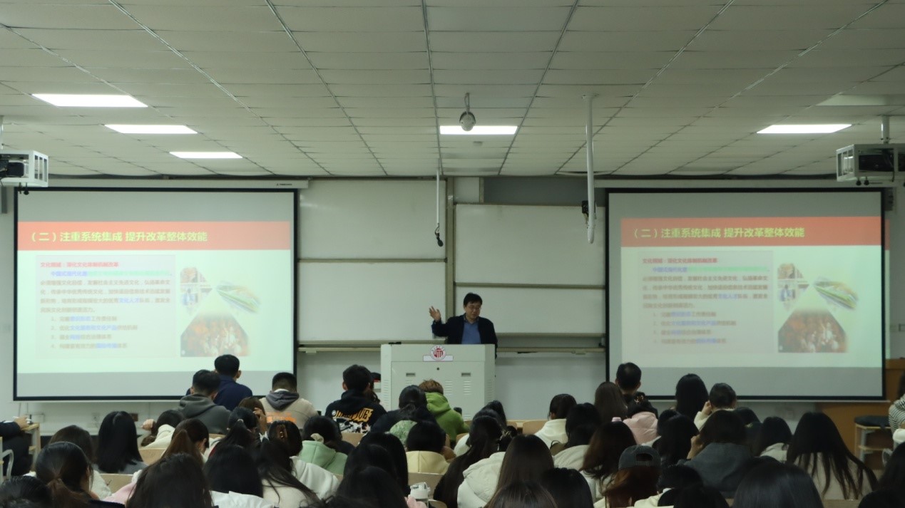 为进一步学习贯彻党的二十届三中全会精神,深刻把握“成为堪当民族复兴大任的拔尖创新人才”的重要意义,12月21日,人人操人人摸人人干邀请上海师范大学耿步健教授在行方楼118教室作题为《学习领会党的二十届三中全会精神 努力成为堪当民族复兴大任的拔尖创新人才》的学术讲座。讲座分为三个部分:“开辟中国式现代化前景”;“标注时代的改革新蓝图”;“新征程上的大学生使命”。人人操人人摸人人干副院长孙喆主持讲座。商丘师范学院副校长刘澜涛、人人操人人摸人人干院长司永海、副院长丁亚仙及部分教师代表和思想政治教育专业2022级、2024-3班全体学生参加了讲座。