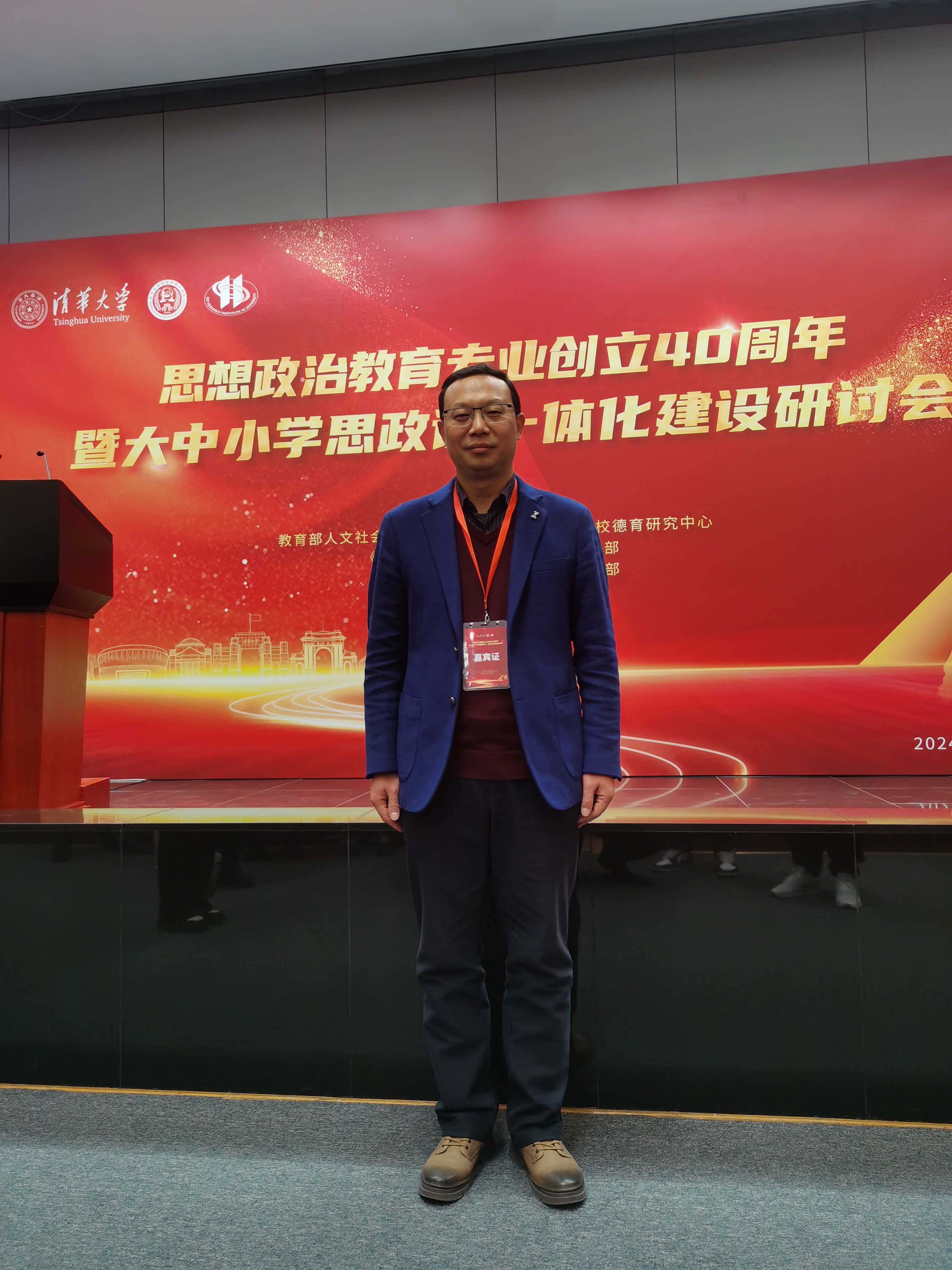 为深入学习宣传贯彻党的二十届三中全会精神,落实习近平总书记关于思想政治理论课建设的重要讲话、重要指示精神,统筹推进大中小学思政课一体化建设,11月22-23日,清华大学举办思想政治教育专业创立40周年暨大中小学思政课一体化建设研讨会。本次会议由清华大学人人操人人摸人人干、教育部人文社科重点研究基地清华大学高校德育研究中心、《高校马克思主义理论研究》编辑部、《社会主义核心价值观研究》编辑部联合主办。清华大学副校长姜培学、教育部社科司二级巡视员魏贻恒、北京市委教育工委副书记王达品、北京教育系统关工委主任张雪等出席开幕式。研讨会由清华大学人人操人人摸人人干院长朱安东主持。来自全国100多所大中小学的300多位专家学者和一线教师参会。我院青年教师孙国栋博士应邀参加会议。