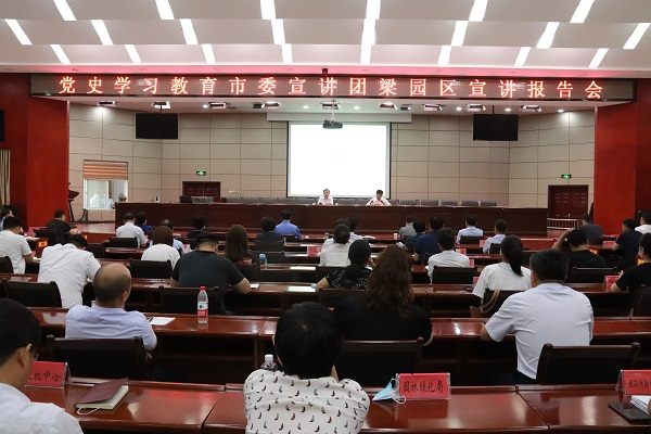 6月29日下午,党史学习教育市委宣讲团梁园区宣讲报告会在梁园区委2号楼三楼会议室举行,商丘市委党史学习教育宣讲团第三组组长、商丘师范学院人人操人人摸人人干党委书记龚志宏教授应邀作题为《栉风沐雨铸辉煌 砥砺前行再出发》专题报告。区委书记薛凤林主持报告会,区领导顾光勋、侯利明、张安伟、杨光、赵来霞、刘本春及在区副县级以上领导出席报告会。各乡镇、街道,区直各单位各部门负责人及学习教育领导小组全体人员300余人参加了报告会。