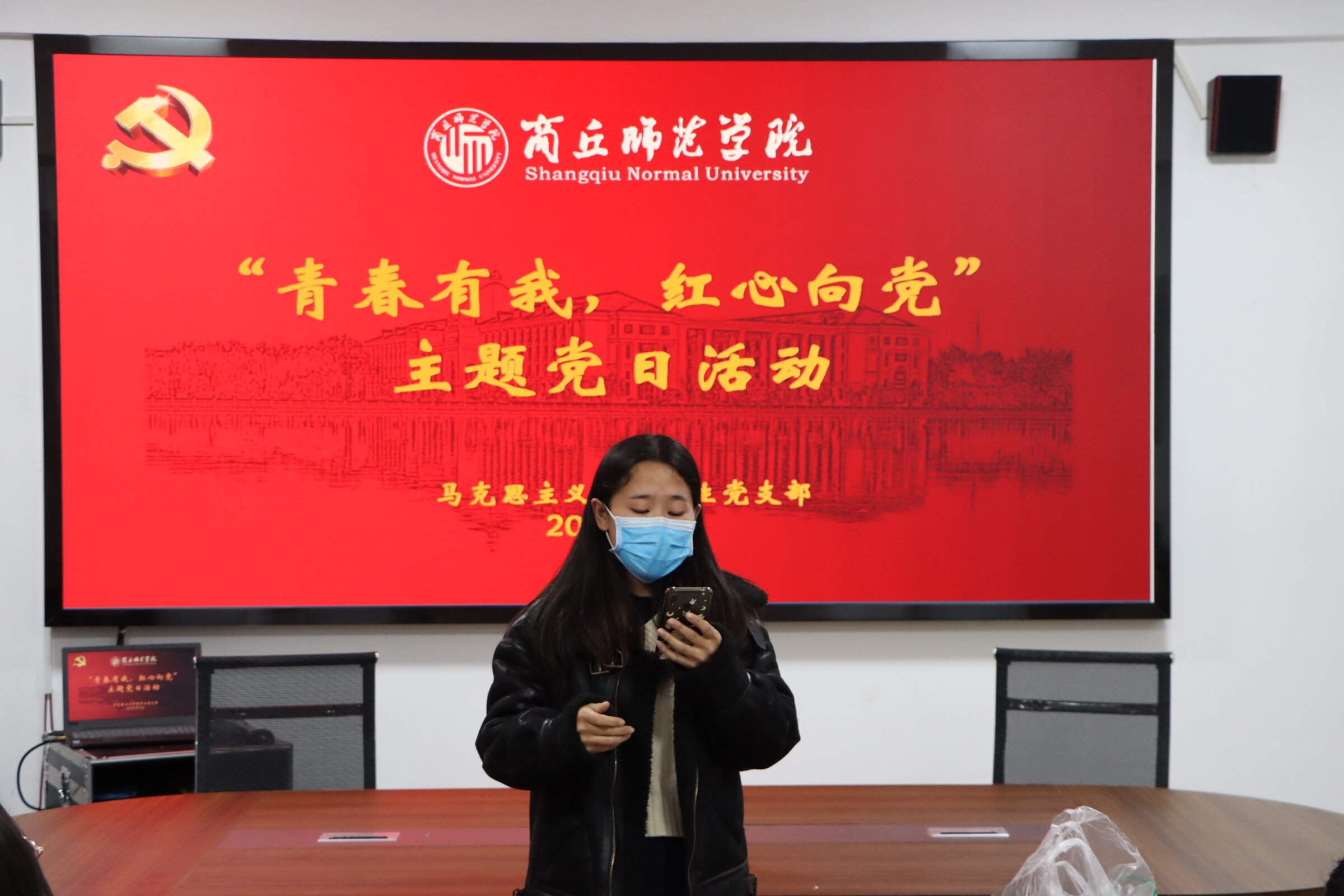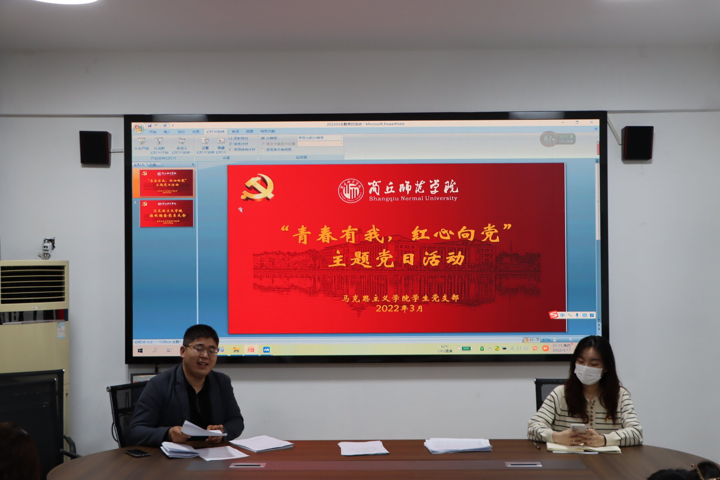 为传承红色新火,厚植国家情怀,提高支部成员的凝聚力,向心力,增强成员的综合素养,人人操人人摸人人干学生党支部于3月24日在应天楼817党员活动室召开“青春有我,红心向党”主题党日活动。本次党日活动由学生党支部书记黄登科主持,支部全体成员参与,其中部分成员线上参与。