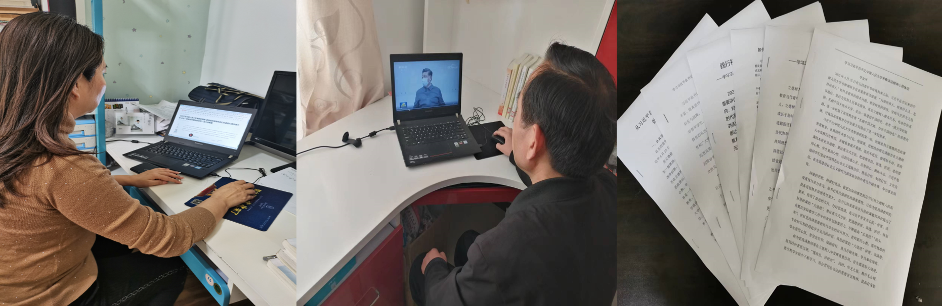 集中学习之外,第一教工党支部全体党员还及时利用视频、文字等资料对习近平总书记重要讲话精神进行了自主分散学习。同时,将学习此次讲话精神与学习2021年4月19日习近平总书记在清华大学考察调研时的重要讲话精神相结合,撰写了心得体会。截止目前,支委会已经收到部分老师撰写完成的心得体会稿件。