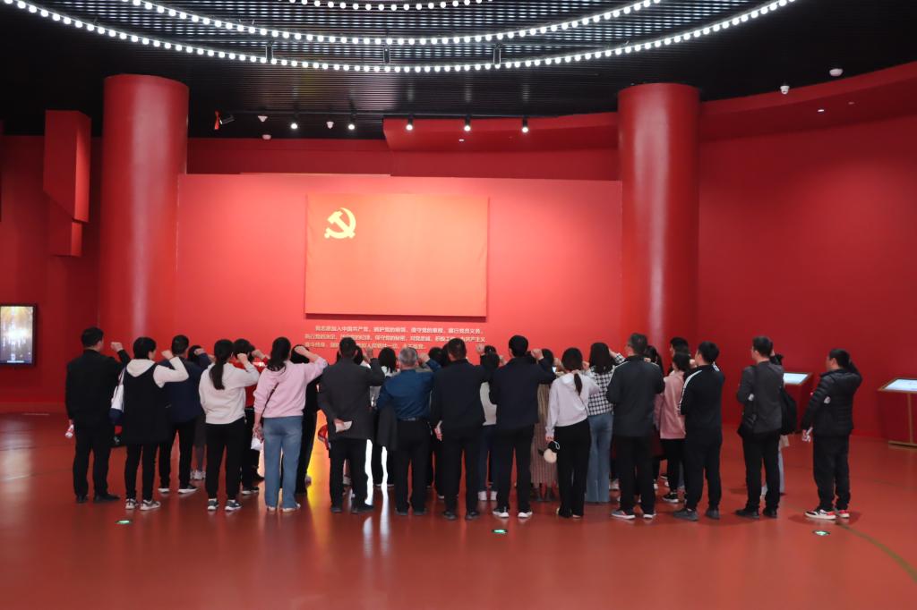 在纪念馆解说员的带领下,全体学员近距离参观了淮海战役期间使用和缴获的各式武器、各类战地实物、丰富的文字以及图片音像资料,回顾了革命先辈舍生忘死的英雄事迹,体悟了其救亡图存、不畏艰险、艰苦奋斗的崇高精神。在纪念馆内,孙喆老师带领全体学员重温入党誓词,更加坚定了学员们的爱党爱国、践行红色精神的理想信念。