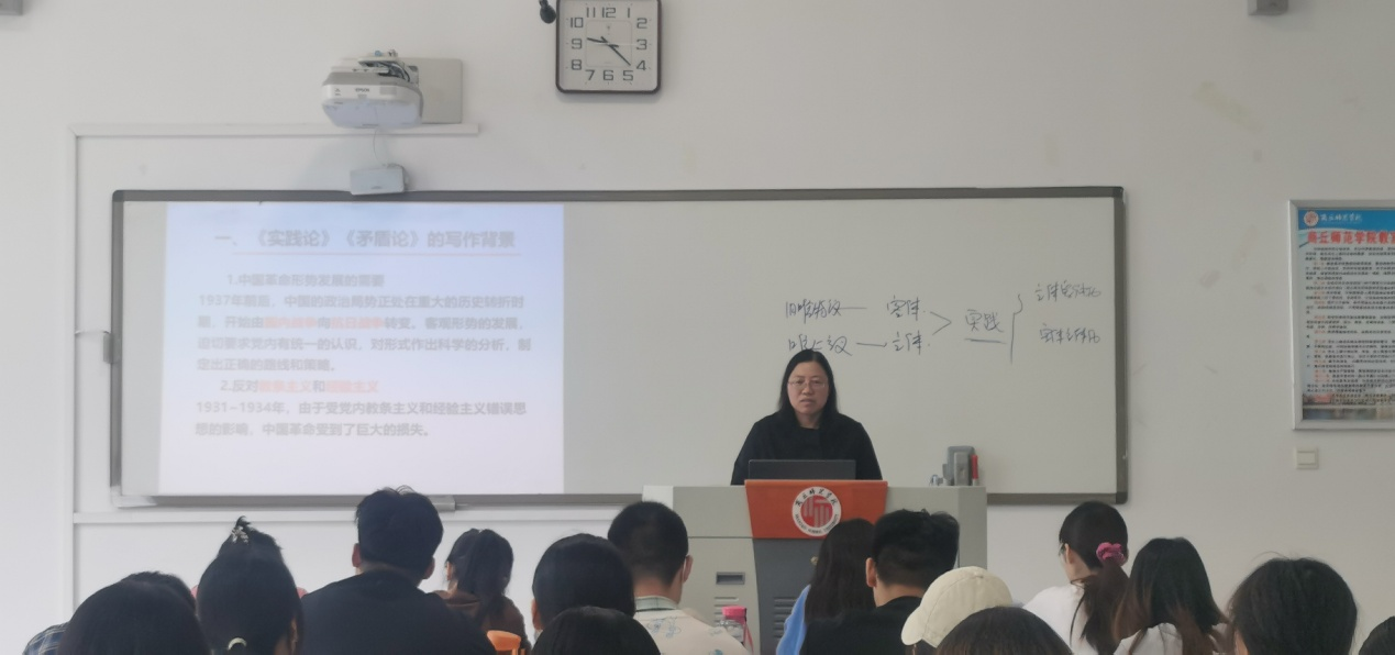 李老师以问题开课,对毛泽东《实践论》的写作背景与基本内容进行深入讲解,并发起小组研讨,引导学生深刻理解实践的观点是辩证唯物主义认识论的第一观点。