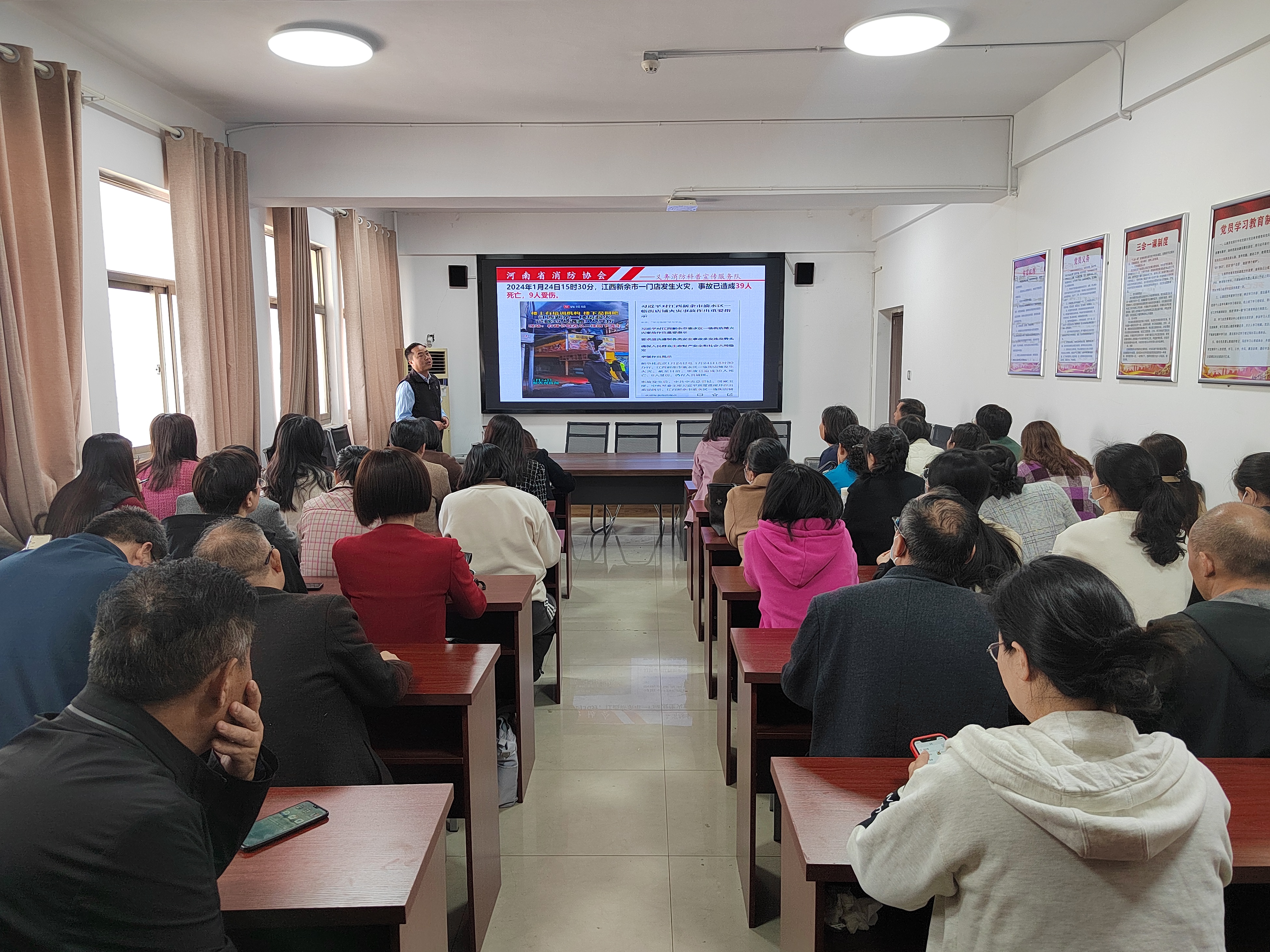 为深入学习贯彻习近平总书记关于安全生产和消防工作的重要论述精神,特别是对近期重特大安全事故的重要指示批示精神,深刻汲取近期发生的重特大火灾事故惨痛教训,不断提升学院全体教职工的消防安全意识和应急避险、自救互救能力,3月22日下午,人人操人人摸人人干在应天楼817会议室组织开展消防安全知识专项培训,邀请河南省消防协会义务消防科普宣传服务队王欢教员为大家讲解相关知识。王欢围绕近期重特大火灾事故警示教育、办公区及家庭的隐患排查重点、用电用气安全防范及应急处置、电动车火灾事故预防、高层建筑逃生方法等内容展开讲解,旨在进一步提升教师的消防安全意识,增强应急避险技能,最大限度地减少事故的发生、减少事故造成的损失。