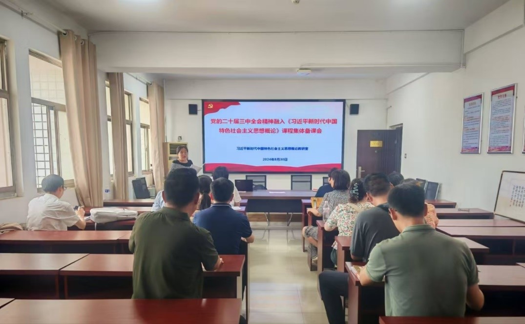 毛泽东思想和中国特色社会主义理论体系概论教研室全体教师共同学习了党的二十届三中全会精神,就党的二十届三中全会精神有机融入《概论》课展开了热烈讨论。老师们结合概论课基本特征研讨了融入的基本原则和要求、融入的重点章节和切入点、融入的具体手段和方法。