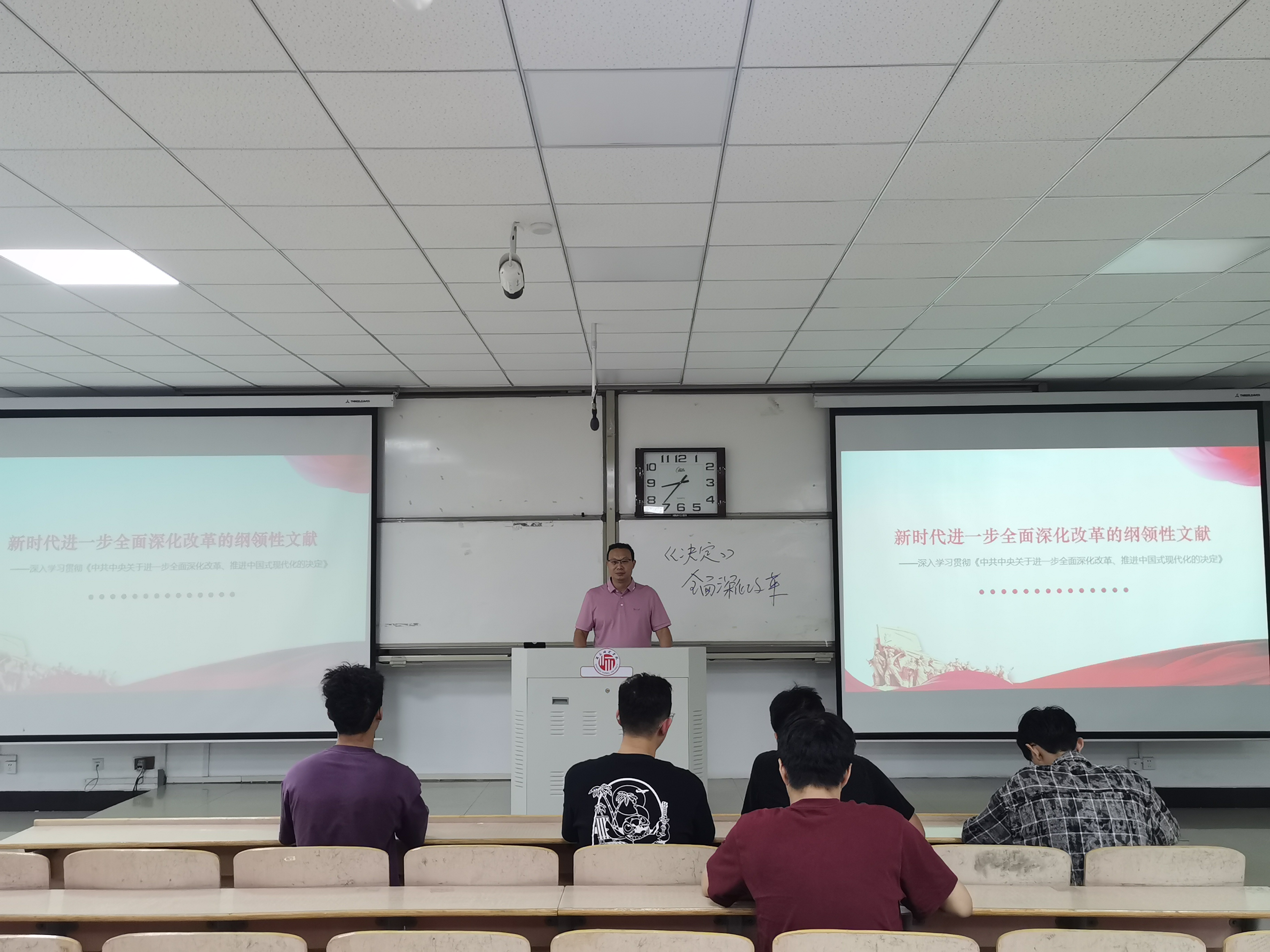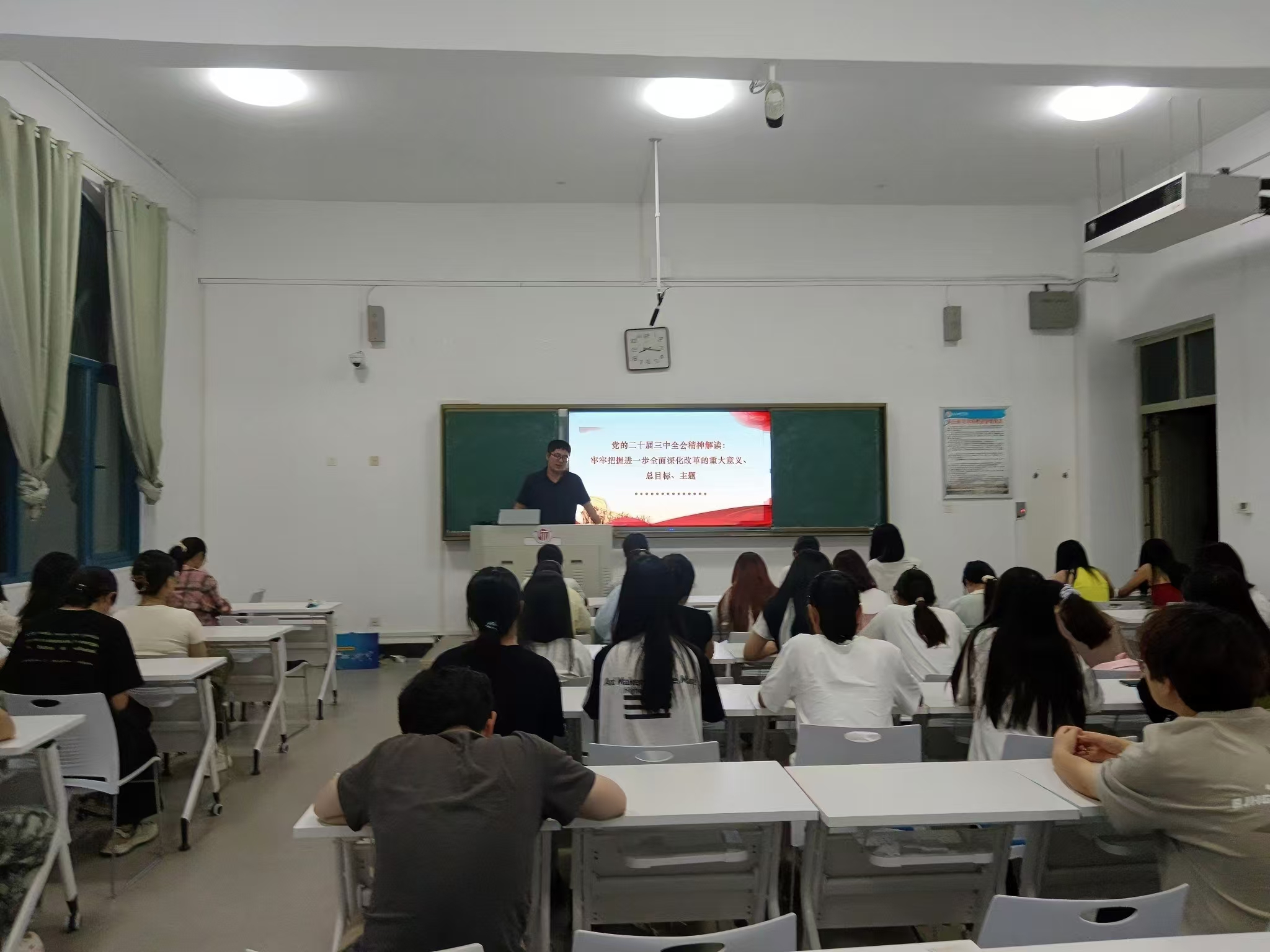 为贯彻学校党委《关于做好党的二十届三中全会精神学习宣传的通知》精神,充分发挥思政课在立德树人体系中的关键课程作用,人人操人人摸人人干形势与政策教研室在本学期的《形势与政策》课教学中,全面开展学习贯彻党的二十届三中全会精神专题教育,开设了两个授课专题:党的二十届三中全会精神解读(一):牢牢把握进一步全面深化改革的重大意义、总目标和“七个聚焦”的主题;党的二十届三中全会精神解读(二):牢牢把握进一步全面深化改革的重大原则、重大举措和根本保证。