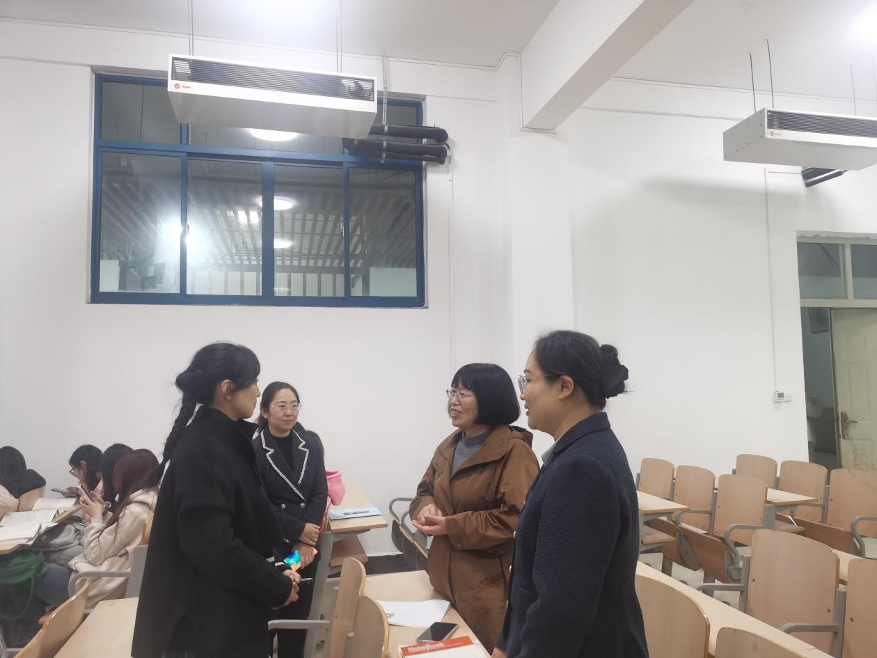 彭秀兰教授听取了袁蕊老师《马克思主义基本原理》课的课堂教学,并在听课后与师生进行深入交流。在交流中,彭教授高度评价了袁蕊老师的课堂教学,并围绕当前思政课教学的难点、堵点,以及如何提高思政课教学的学理性、针对性等问题进行现场指导。
