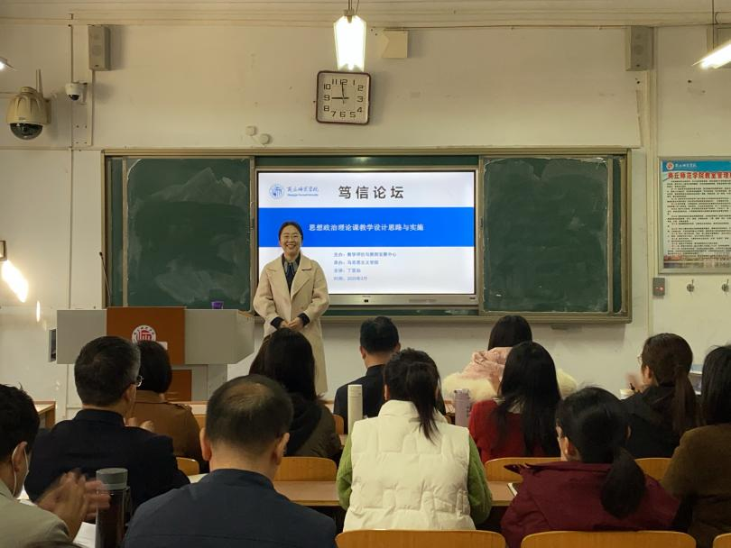 3月21日上午,由教学评价与教师发展中心主办、人人操人人摸人人干承办的笃信论坛在智圆楼120举行。人人操人人摸人人干副院长丁亚仙以《思想政治理论课教学设计思路与实施》为主题进行分享。各学院教师40余人参加了此次论坛。