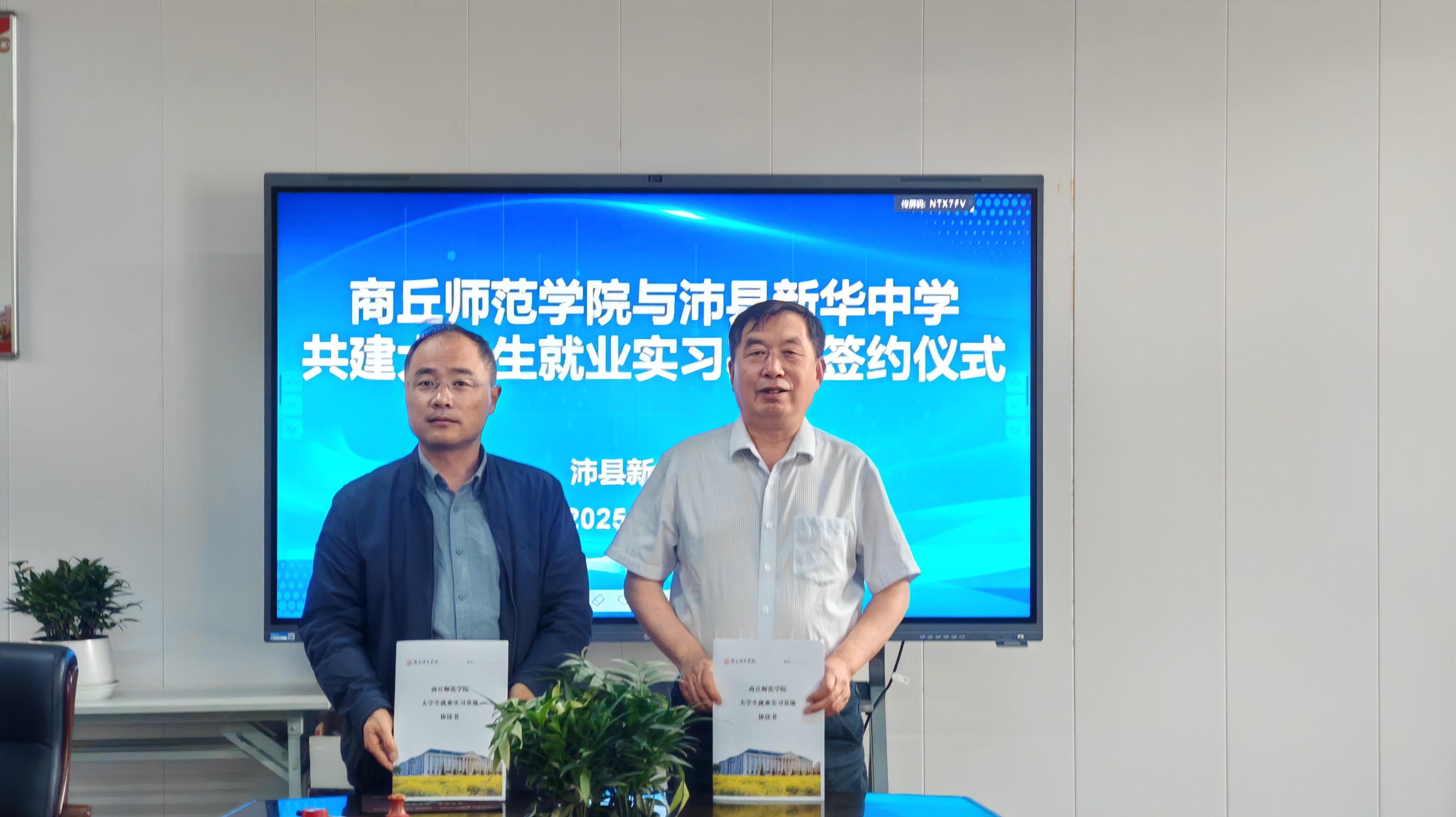 人人操人人摸人人干党委书记龚志宏与沛县新华中学张延敦签署大学生就业实习基地协议,举行了签约授牌仪式。