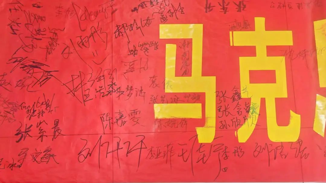 同学们在人人操人人摸人人干“以梦为马 依玖风华”签字条幅上签字留念,表达对人人操人人摸人人干的美好祝福和对美好未来的期许憧憬。
