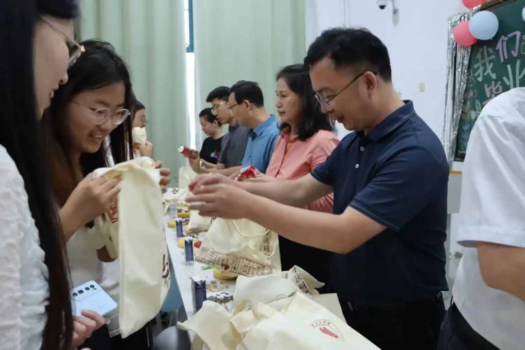 龚志宏、司永海、张文涛代表学院为每位毕业生送上贺卡、帆布袋等毕业礼物。