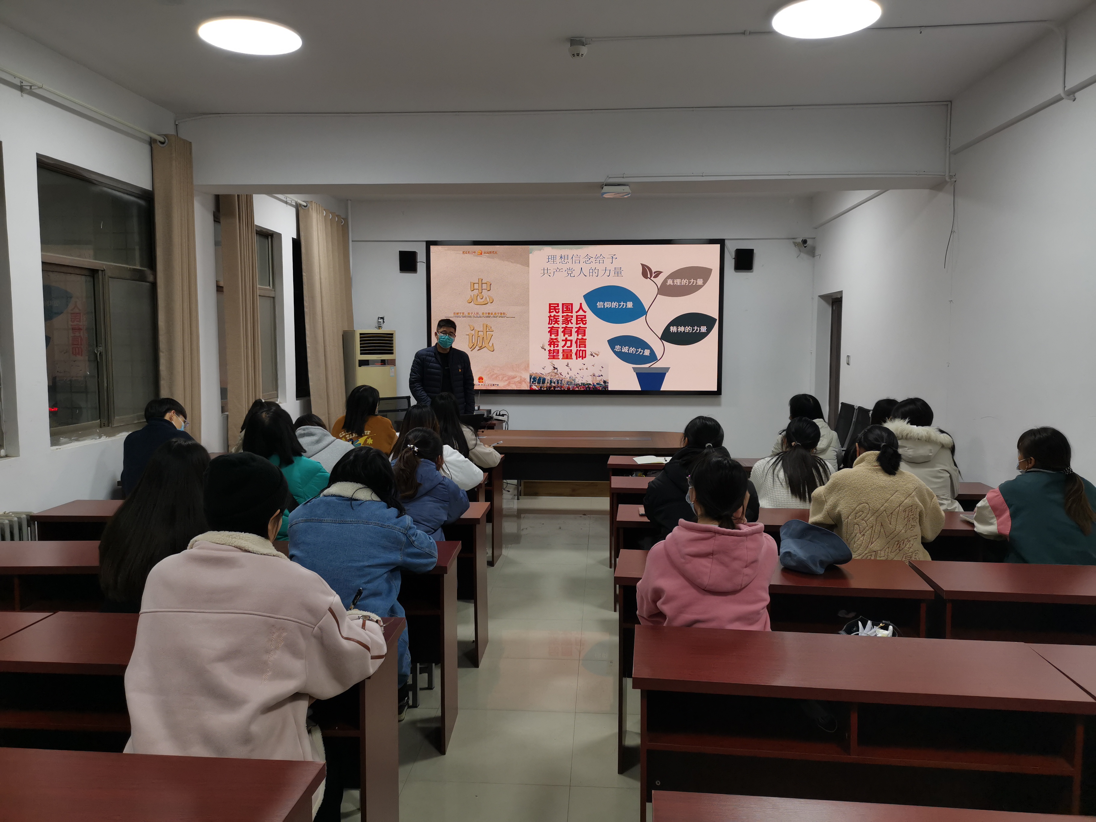 黄登科从马克思建党学说、党的奋斗目的和历史使命、共产党员标准三个方面向我们论述理想信念的重要性,强调从加强理论武装,强化党性锻炼,用实际行动练就理想信念的“金钢不坏之身”。同学们认真听讲,积极主动地参加学习和讨论。