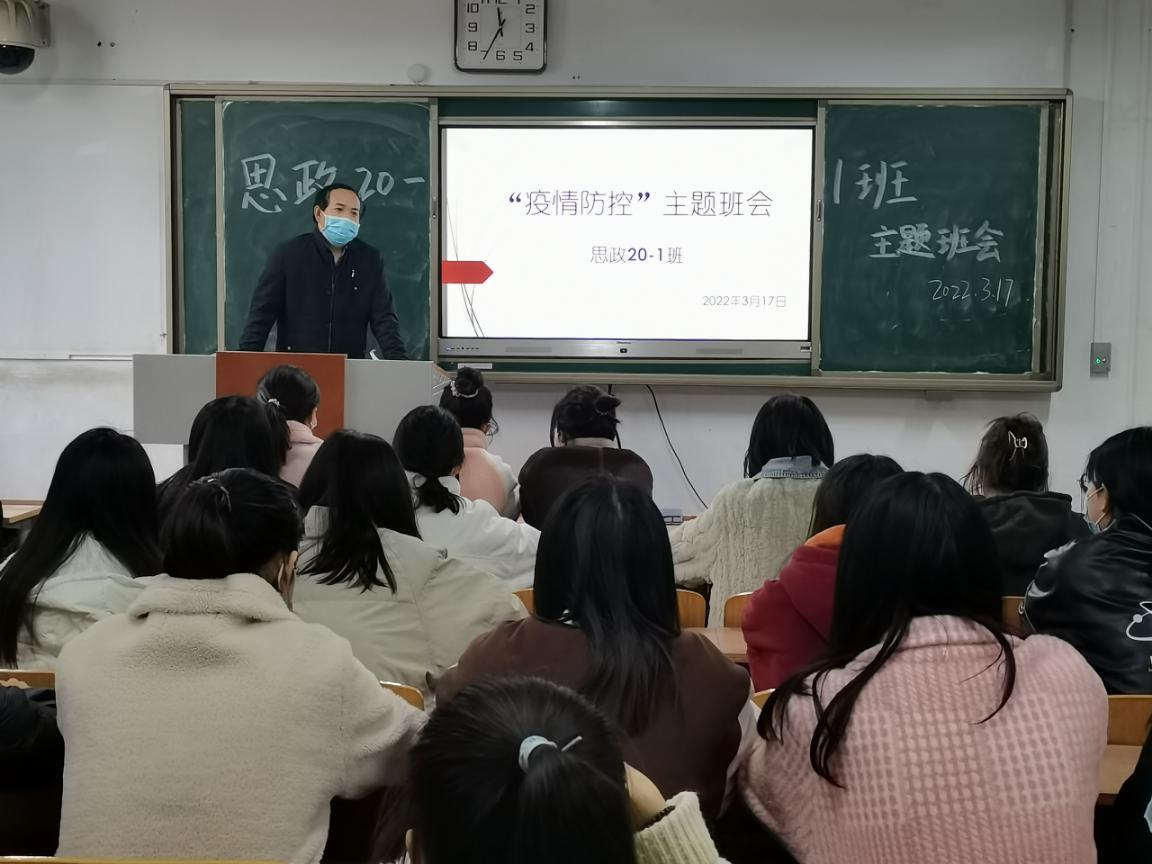 为了进一步增强班级同学的疫情防控意识,严格落实学校疫情防控要求。3月17日,20级思想政治教育20-1班在智圆楼115教室召开疫情防控主题班会,班会由班主任麻陆东主持。